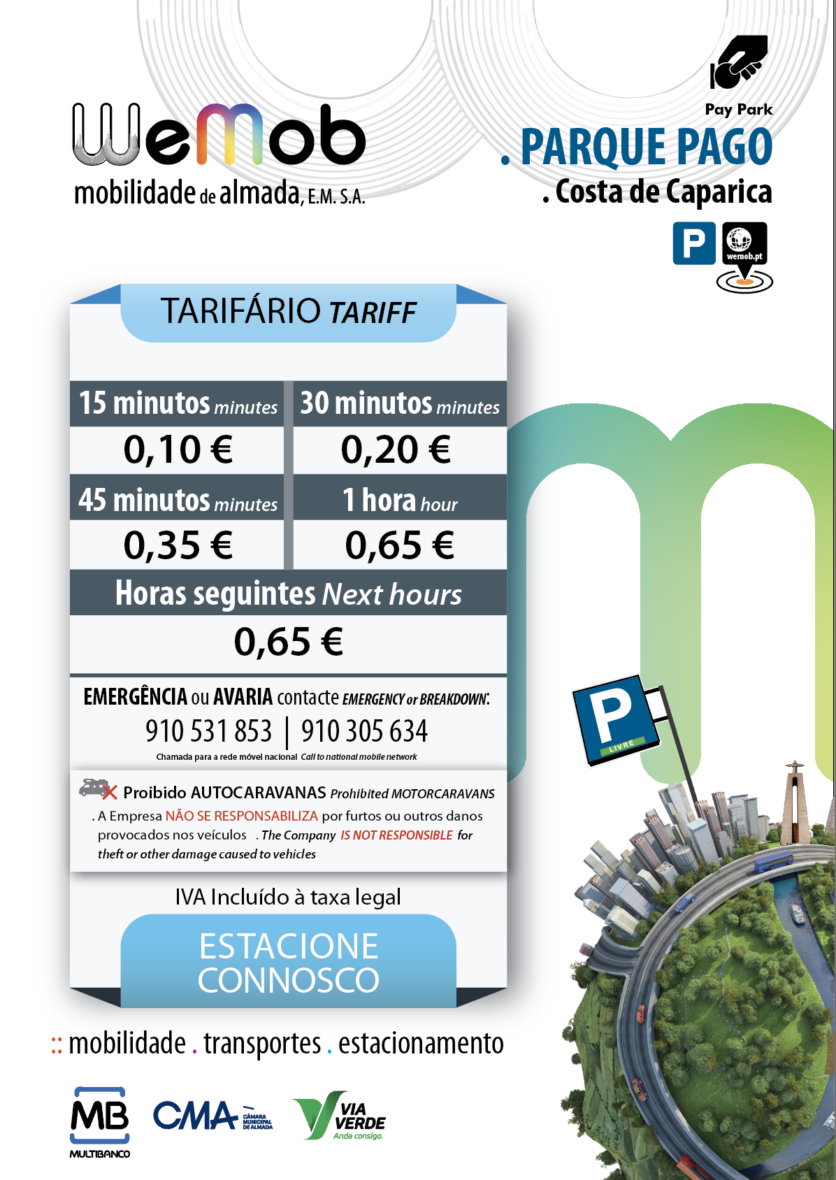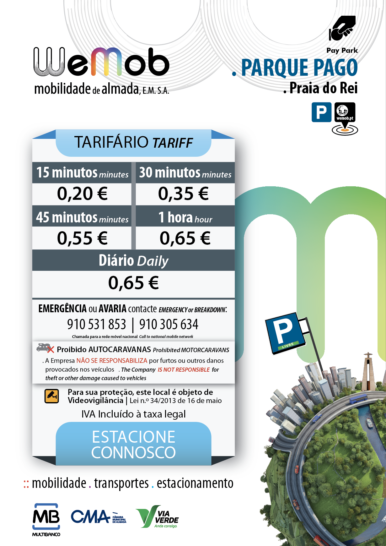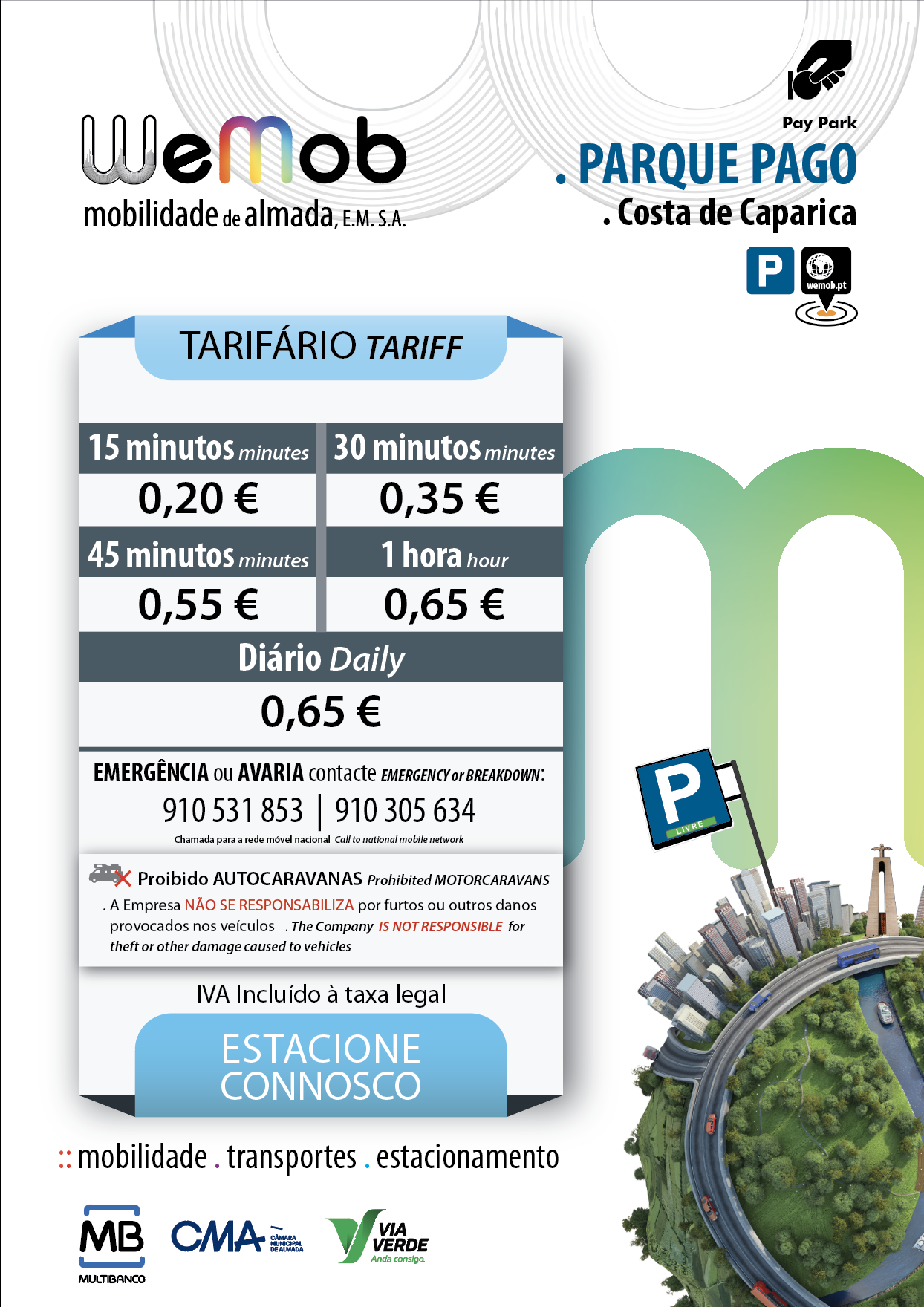0,65€ / hora | 0,65€ / Diário – Época Baixa