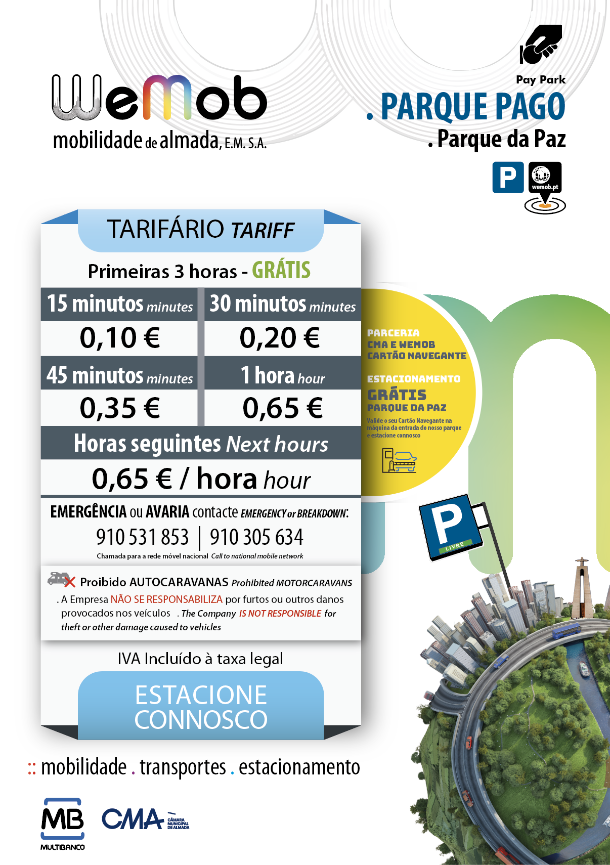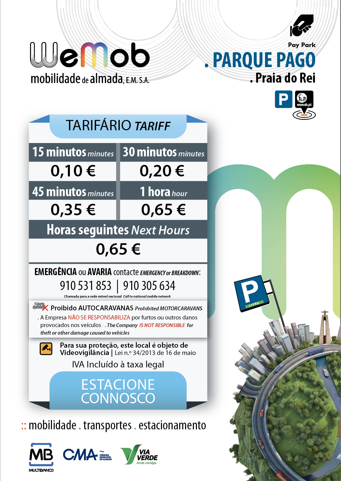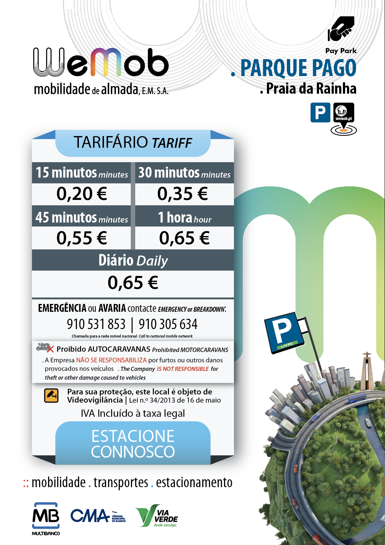 0,65€ / hora | 0,65€ / Diário – Época Baixa